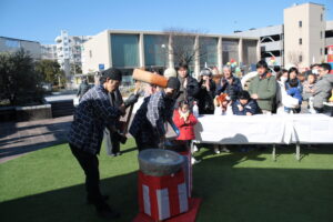 1月だと思えないほど温かい陽射しの下、「2026新春高の原」を開催しました。臼と杵で本格的に作る餅つきは、行列ができるほどの人気ぶり。子どもたちにも餅つきを少しお手伝いしていただきました。つきたて餅の味は格別で、全4回、あっという間に配り終えました。同時開催していた巨大だるま落としは、ちょっと難しすぎたかな(全クリアはなんとおひとり。1段クリアが3名だったかな)??それでも100人以上の方にご参加いただきました。「また挑戦に来るが良い」byダルマ(と書きつつ、もし次回もするなら難易度ちょっと再検討します by 運営スタッフ)。イベントを締めくくったのは、おなじみ東大寺学園中・高等学校和太鼓同好会。17名の生徒さんによる力強い演目をご披露いただき、「今年も頑張るぞ!」と身が引き締まる思いになりました。ありがとうございました!