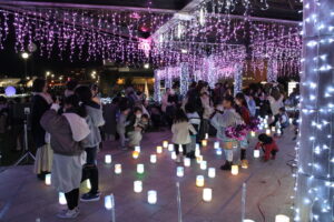 今回で10回目となる「たかのはらイルミネーション」。点灯セレモニーでは、エレクトーン・デモンストレーターの加藤夢望先生によるエレクトーン演奏とカウントダウンの後、ユニスタイル高の原の生徒のみなさんでクリスマスソング合唱を行いました。おなじみのクリスマスソングやディズニーメドレーで会場がひとつになったあとは、ステージのお色直し。イルミネーションのテーマであるテーマは「みんなで灯す未来への光」になぞらえて、手作りのLEDランタンを、ユニスタイル高の原の子どもたちと当日来場いただいた皆さんとでステージに並べました。当日飾ったLEDランタン、奈良きたまちといろランタンの会、関西文化芸術高等学校協力のもと、今回のイルミネーションに合わせて制作した作品で、ステージの照明を暗くすると、会場からは「きれい!」と歓声が起こりました。その後は思い思いに写真撮影を楽しんでいただき、好評のうちにセレモニーを終えることができました。